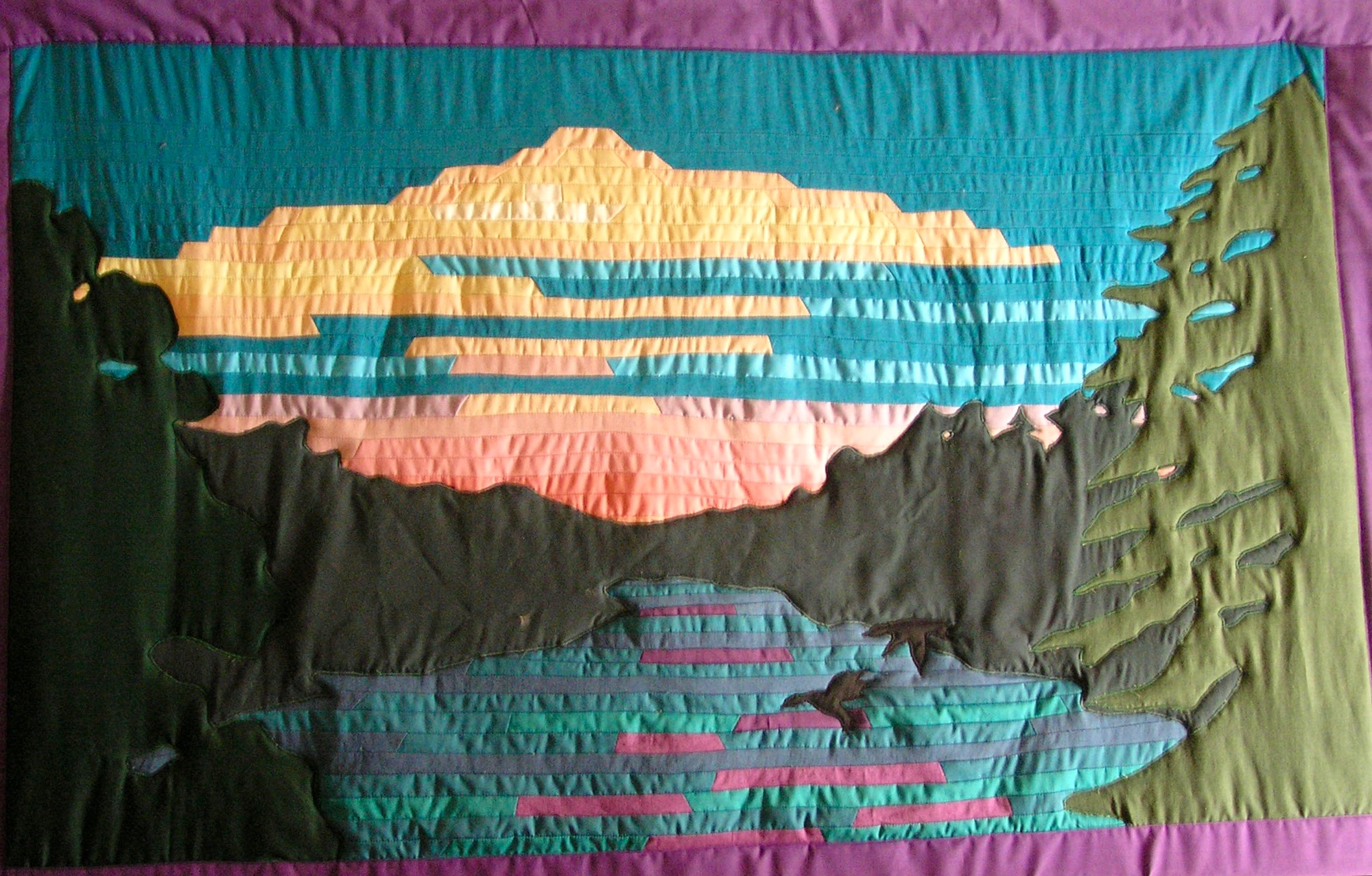 Quilt DetailsDescriptionThis is an early, strip pieced quilt with some tree and bird appliqués. It lacks actual quilting which results in it drooping a bit over time.SizeN/AYear1990s Favorite: 0 Prev Leave a comment Cancel reply Save my name, email, and website in this browser for the next time I comment. Send Comment Δ